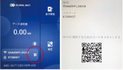 画面上のQRコードをお客様のスマートフォンで読み取ると簡単にWiFi端末と接続できます。