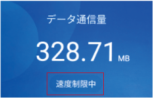 容量超過の場合、ホーム画面データ通信量の下に「速度制限中」と表示され、日本時間の午前0時に通常速度に戻ります。